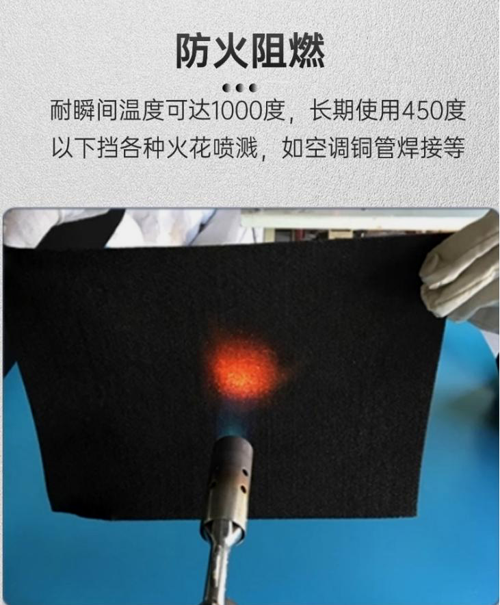 耐高溫碳纖維防火毯背膠鋁箔雙面復合預氧絲針刺氈,耐高溫450度左右,可切割成條狀,使用在門窗設備縫隙密封領域,當火花噴濺,耐化學性能好,抗酸堿。廣泛應用于工業建筑、航空領域等。